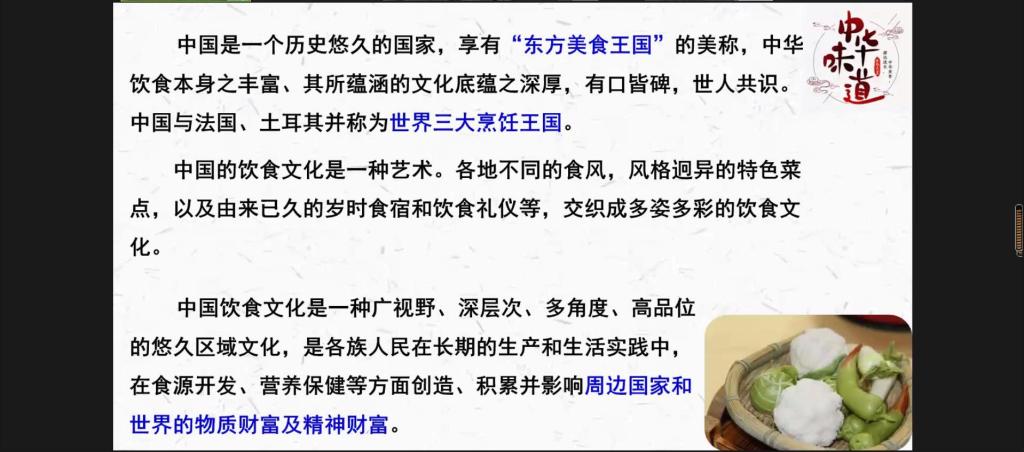 活动过程中中国资深级烹饪大师、餐饮业国家一级评委刘建民现场讲解中华味道与菜系文化,从中华味道蕴含的文化底蕴,到各地不同的食风和风格迥异的特色菜系,留学生们了解了中华美食对世界的影响和贡献,领略了菜肴流派中的地缘文化,受益匪浅。