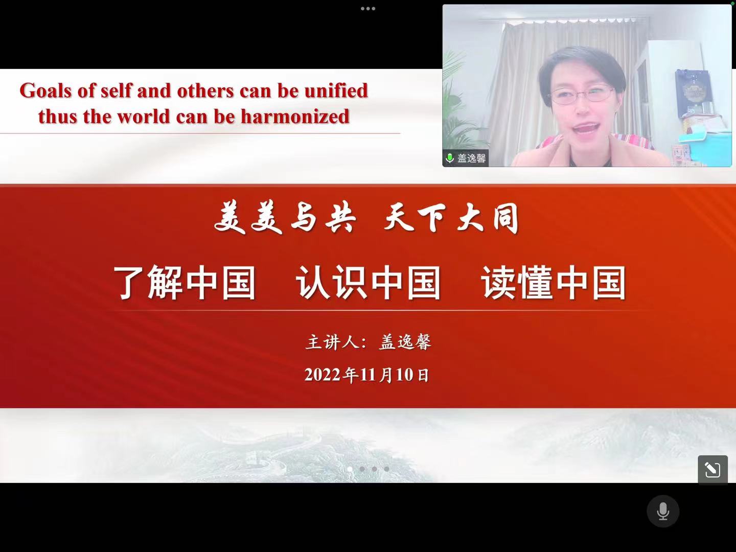 习近平总书记在对来华留学生群体的两次回信中提到希望留学生们深入地了解真实的中国,向世界讲述中国,积极促进各国人民民心相通。我校为让留学生更好地发现中国,探索中国变化,2022年11月10日,国际处邀请马克思主义学院的盖逸馨教授开展了以“了解中国、认识中国、读懂中国”为主题的国情教育讲座,为留学生带来了内容丰富、形式多样的一课。留学生纷纷踊跃参加,与主讲老师积极讨论,获得热烈反响。