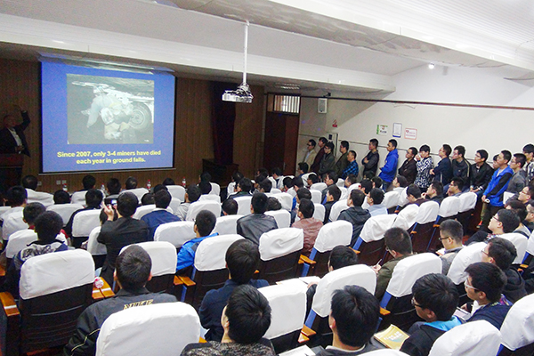 Christopher Mark在报告中介绍了美国在顶板控制方面的最新成果和美国煤矿安全与健康监察局的工作内容,陈金生主要讲述了顶板控制方面的国际先进科技。两位教授激情澎湃的演讲博得现场阵阵热烈的掌声。两位学者还就相关问题与现场师生进行了交流。