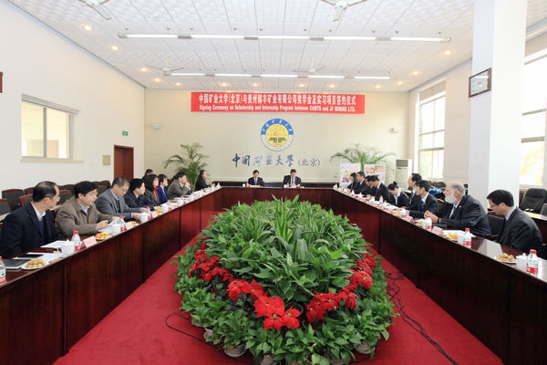 会见中,乔建永介绍了我校的发展历史和现状及其与矿业界的合作情况,并代表我校学生对该公司提供的资助和就业机会表示感谢。