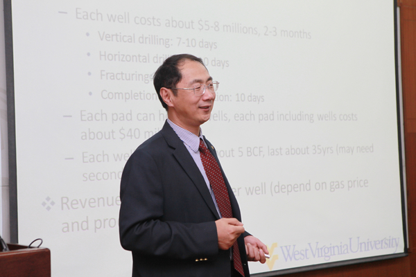 会谈结束后,孙庆云博士应邀在民族楼135做了题为“Shale Gas and Its Impacts on Coal”的学术报告。目前,页岩气的开发与利用是国内外关注的热点问题。孙庆云结合弗吉尼亚州的情况,用大量事实、数据较为详细地介绍了美国的能源结构变化、页岩气的分布和开发利用情况,尤其是近三年来页岩气革命给美国煤电企业带来的冲击。报告精彩生动,不仅吸引了我校的许多教授和学生,国家能源局、山西国际能源集团的相关专家、学者也慕名前往。
