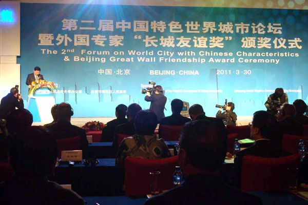 “长城友谊奖”是北京市政府授予在京外国专家的最高荣誉称号。1999年开始设立,每年评选一次。目前,已有160位外国专家获此殊荣。第二届中国特色世界城市论坛同期举办,部分“长城友谊奖”获奖专家在论坛上发言。