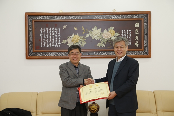 朱书全首先对卢春生副教授的来访表示热烈欢迎,高度肯定了其对推动我校和科廷大学开展联合培养博士项目做出的积极贡献,并希望作为矿大校友的卢教授能够抓住国家“双一流”建设的契机,继续加深与我校相关学院以及国家重点实验室人员的合作。卢春生副教授随后表达了进一步通过联合培养研究生、共同申请科研项目等多种途径与我校开展学术和科研合作的意愿。会谈中,朱书全还为卢春生副教授颁发了我校“客座教授”聘书。