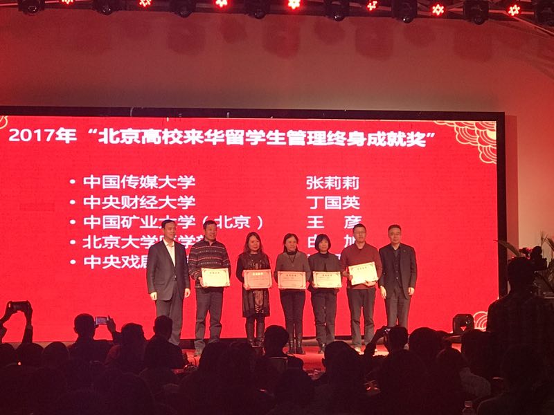 会上总结了一年来的工作成果,表彰了先进集体及个人,并为留学生管理战线上有杰出贡献的留管干部设立了终身成就奖,我校国际合作与交流处的王彦同志喜获“2017年北京高校外国留学生管理终身成就奖”,北京高教学会的会长线联平、中国教育国际交流协会秘书长赵灵山为获奖教师颁发了获奖证书。会上还进行了青年留管干部技能大赛及文艺演出。