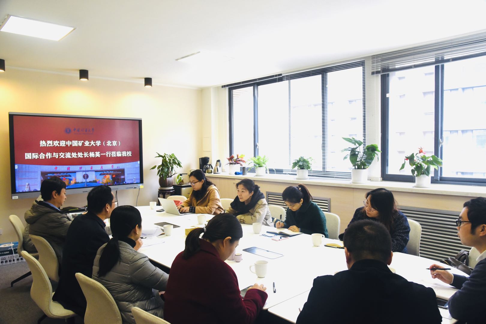 23日上午,我校代表首先来到中国矿业大学国际交流合作处、港澳台事务办公室,受到对方的热烈欢迎。双方介绍了两校整体国际化工作战略和国际合作基本情况,重点交流了来华留学招生及管理、外专引智项目、出国(境)管理、港澳台侨事务管理、中外合作办学项目申报及管理、境外办学等方面的经验,并结合学校特点及具体工作实践中遇到的问题进行了具体交流。