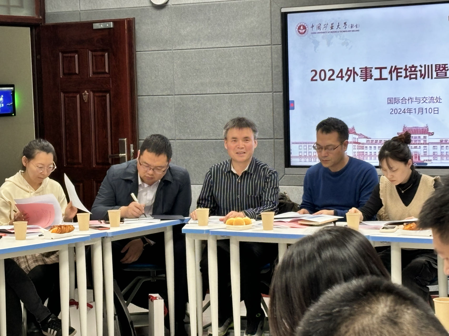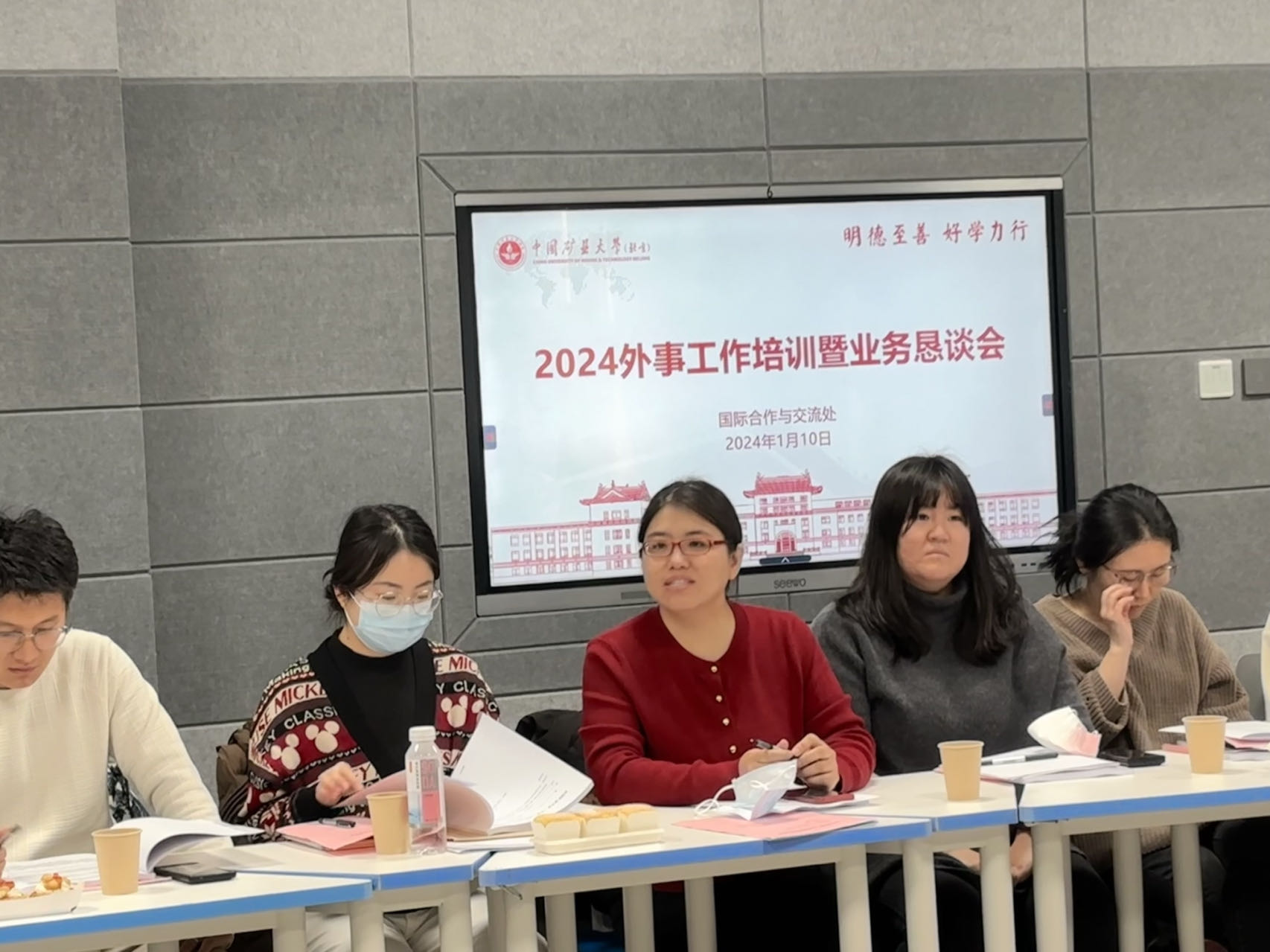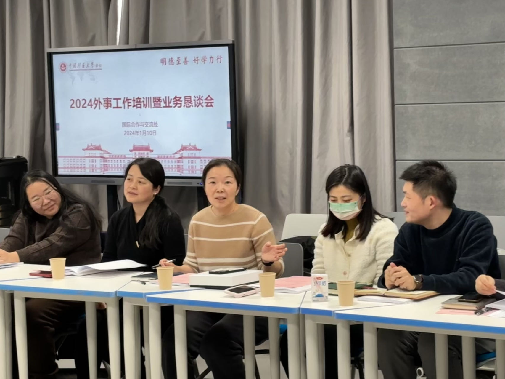 1月10日下午,我处在教学楼智慧教室213举办2024年外事工作培训暨业务恳谈会。各学院及国重实验室主管外事负责人、外事秘书以及国际合作与交流处全体工作人员参加会议。国际合作与交流处处长杨英主持会议。