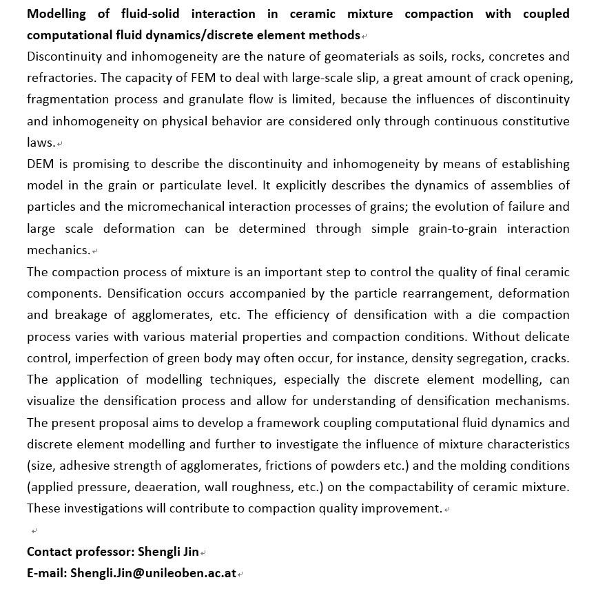 拟留学时间为2020年9月,在雷奥本矿业大学进行研究与学习,完成博士学位。