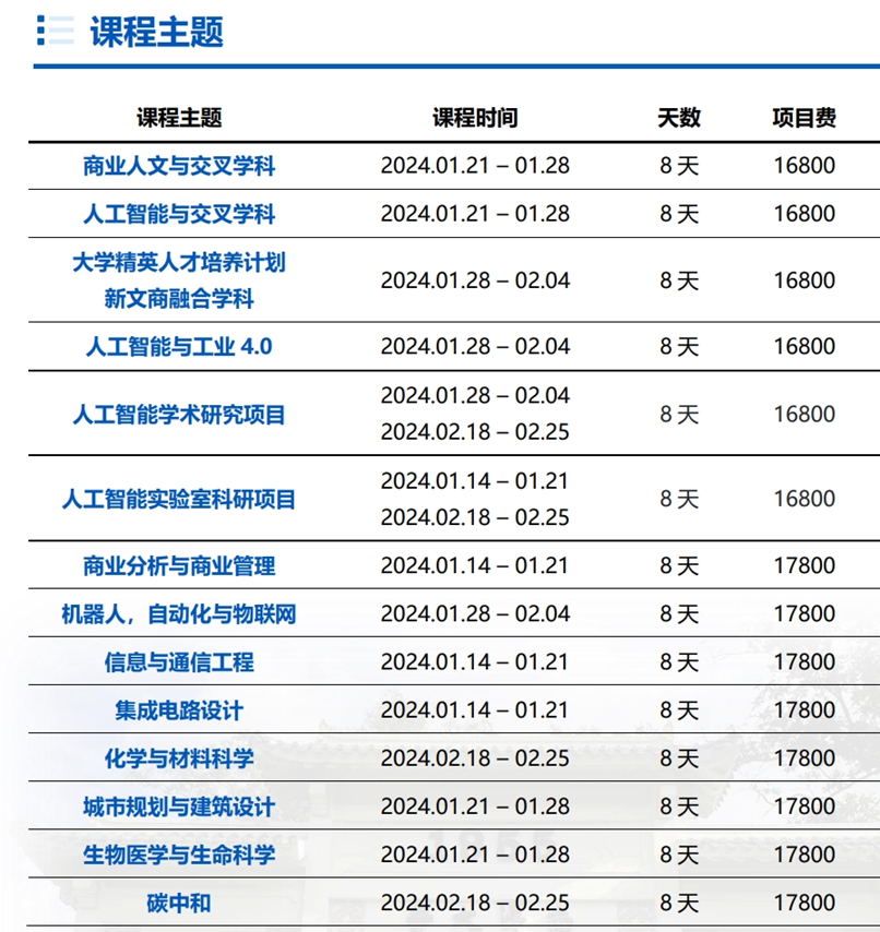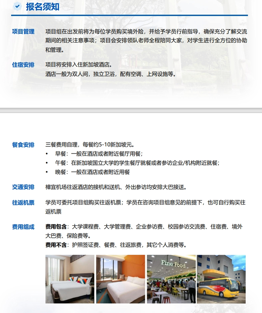 备注:项目由南洋理工大学指定第三方罗客教育集团组织,具体事宜由该集团负责,学生须仔细了解项目详情后,根据个人需求决定是否报名,并在缴费前与该机构签订具体协议,约定课程、退费等事宜。