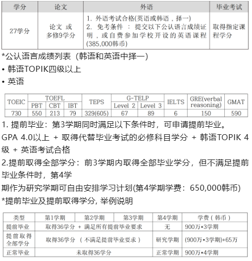 • 学费 : 9,000,000韩币/学期