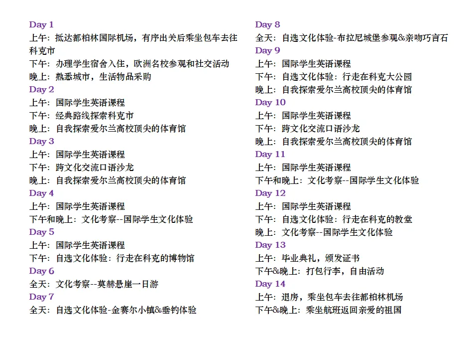 ◎ 与全球各国家的国际学生们一起感受爱尔兰人文风情、自然风光,提升跨文化沟通自信。