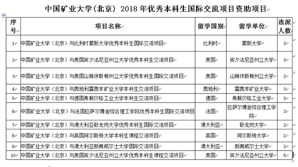 近日,国家留学基金委公布了2018年优秀本科生国际交流项目的评审结果,我校共有10个项目通过专家评审,被国家留学基金委正式确立为2018年优秀本科生国际交流项目。