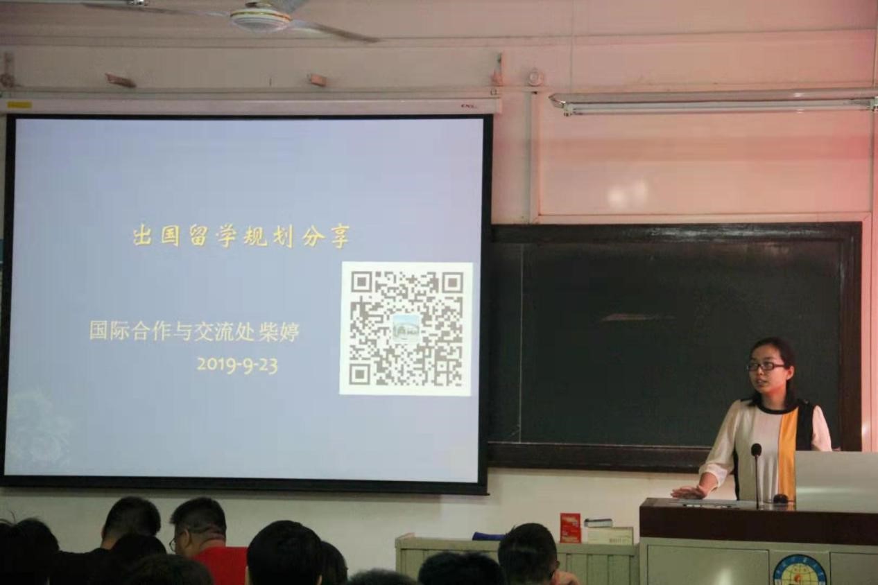9月23日下午,我校地球科学与测绘工程学院出国留学规划分享会在民族楼323召开,此次分享会由我校国际合作与交流处柴婷主讲,主要目的是与同学们分享出国留学的相关事宜。参加本次会议的有地测学院党委副书记杨向东、地球物理与信息系主任邹冠贵、辅导员信延儒及50余名学生。