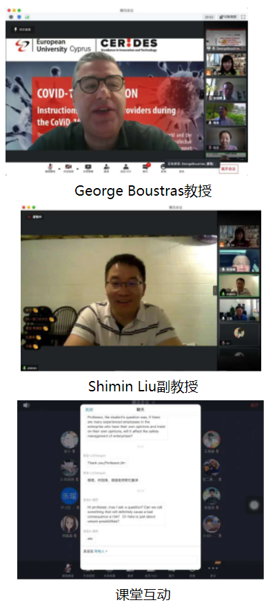安全学院邀请了来自希腊、美国和加拿大的4位国际知名教授,使用线上会议的方式进行授课。George Boustras教授任教于塞浦路斯欧洲大学,是艾奥尼斯·格雷戈里乌(Ioannis Gregoriou)工商管理学院院长,风险与决策科学中心(CERIDES)主任,塞浦路斯共和国总统阁下自然灾害顾问,也是安全科学领域著名学术期刊Safety Science的主编,主要研究领域是风险评估。Derrick Chun老师是职业健康和安全专家、职业卫生经理和高级职业卫生师,加拿大职业卫生师,在过去的28年中从事对职业病索赔案件的判决进行暴露评估和企业工人回顾性暴露评估的方法和做法方面的研究。Rain Yang老师是美国工业卫生委员会授予的认证工业卫生师(CIH),明尼苏达州卫生部的注册环境和加拿大注册安全专业人员、调查、检查和回顾性暴露评估的健康安全专家,主要研究职业健康和安全实践领域。Shimin Liu副教授任教于宾夕法尼亚州立大学能源与矿物工程系,于南伊利诺伊大学获工科博士学位,于中国矿业大学(北京)获矿物加工工程专业硕士学位及环境工程专业学士学位,是International Journal of Coal Science and Technology期刊主编,主要研究领域为岩石力学,矿井通风,多孔介质中的流体流动等。四位教师结合国外安全专业的发展方向和前沿技术,系统地讲授了Importance of Risk Assessment in Safety Management,Modern Methods and Tools for the Assessment ofOccupational Exposures and Safety Factors和Unconventional Coal Mine Gas and its Implication on Safety and Energy这3门课程。
